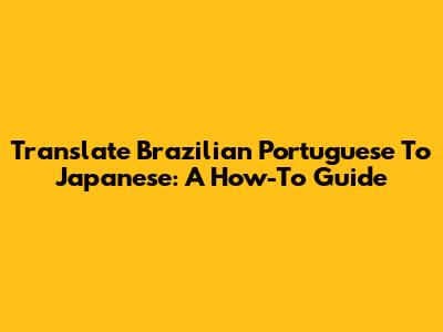 Translate Brazilian Portuguese To Japanese: A How-To Guide